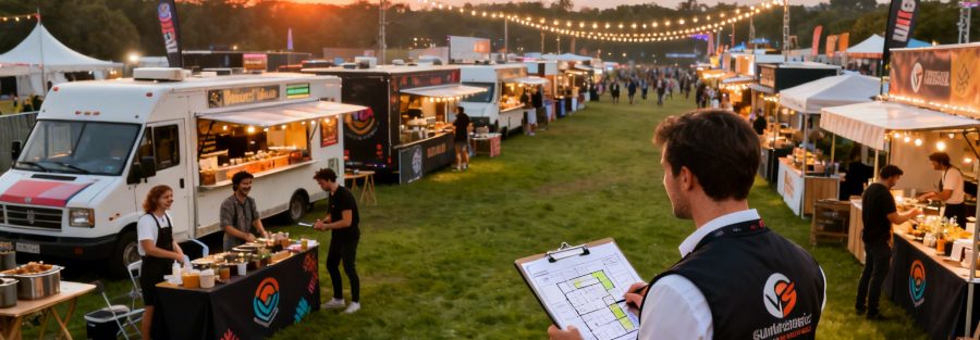 • The Food Court: This is your high-energy hub for major meals. Position it strategically between stages to catch crowds as they move from one set to another.