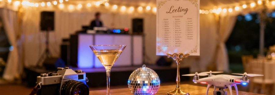 | DJ or Live Music Entertainment | Medium — setlists, transitions, soundchecks | Medium–High — sound/lighting, talent fees; live acts costlier | ⭐⭐⭐⭐ — drives atmosphere and guest engagement | Dance-focused receptions; cocktail hour (live musicians) | Provide do‑not‑play list, confirm MC duties and backups |